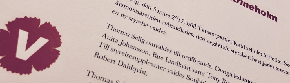 Flera företrädare för Vänsterpartiet har undertecknat en debattartikel, däribland gruppledaren för Vänsterpartiet Katrineholm, Tony Rosendahl, och distriktsordföranden, Patrik Renfors. Debattartikeln återges nedan:
